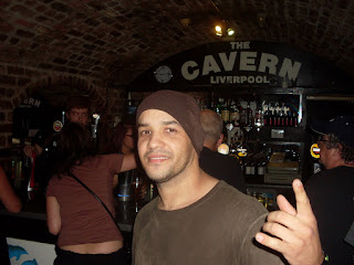 Parece que a repercussão do The Wall ecoou bastante.... Quando chegamos no Cavern, para fazer o primeiro show da tarde no backstage o tal do Bill Hackle (dono do Cavern e organizador do evento) estava esperando e querendo ansiosamente falar conosco. Ele chegou perto de mim e disse que não agüentava mais as pessoas vindo comentar da madrugada passada no American Bar e que gostaria que eu tocase o The Wall no final do show. Eu disse que tocaria, é claro. O apresentador já nos apresentou com um entusiasmo diferente o povo aplaudiu e começamos minha versão de Come Together. O show fluiu muito bem e o povo aplaudiu bastante, muito mesmo, fiquei surpreendido. Então o Bill subiu no palco de novo e começou a elogiar contando como o Marcelo tinha apresentado meu trabalho pra ele, a história toda e coisa e tal. Aí ele começou numa sessão de elogios que encadeou numa sessão de aplausos, aplausos e aplausos. No meio da história toda, de tantos elogios e tantos aplausos, lembrei de toda minha jornada, desde as minhas raízes, aprendendo a tocar, passando um filme rápido de minha vida na cabeça, e enquanto ele falava e o povo aplaudia não agüentei e desabei a chorar. Ele dizia: Amazing! Brilhant! Fantastic! E o povo aplaudindo. Conti as lágrimas e depois do discurso do Bill ataquei os primeiros acordes de Another Brick in the Wall part 1. No final de tudo a casa veio abaixo... Autógrafos, ovações e ovações, muitos perguntavam do disco, do site, de tudo. Tirando um argentino mal educado que ia tocar depois e estava estressadinho para a gente sair rápido do palco ( e eu ainda desliguei os pedais dele sem querer... O cara ficou enfurecido..) foi inesquecível e emocionante essa gig do Cavern. Depois no calor das ovações e abraços de todos saímos a passeio pelas ruas de Liverpool tirando fotos e rindo dos acontecidos. E eu só agradecendo a Deus pelas aventuras desse semi-caipira na terra dos Beatles e esperando o segundo show, que seria num palco pequenininho no A Hard Day’s Night Hotel e que foi transferido por Bill de última hora para o Cavern Pub, em frente ao Cavern Club. Pensa....